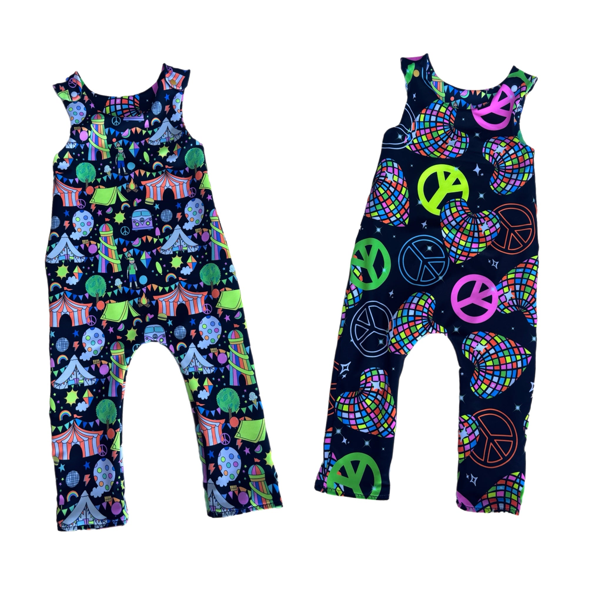 These reversible rompers make the perfect outfit for baby raves, birthdays and festivals.