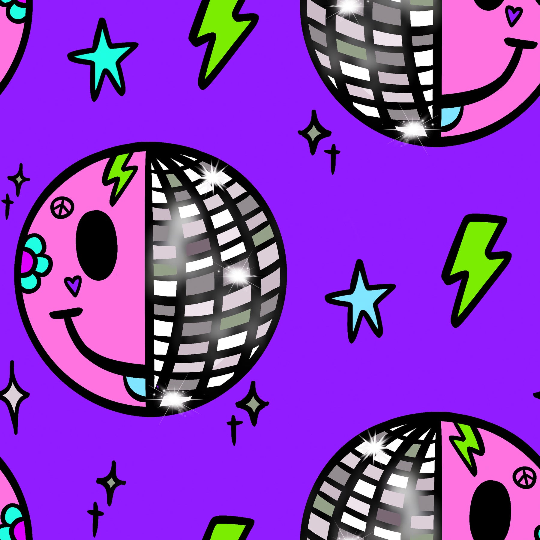 UV Glow Purple Smiley Disco Leggings